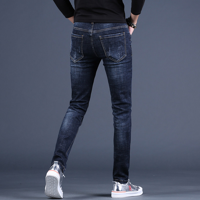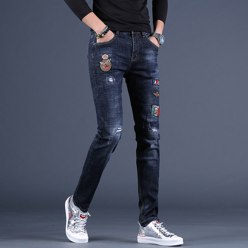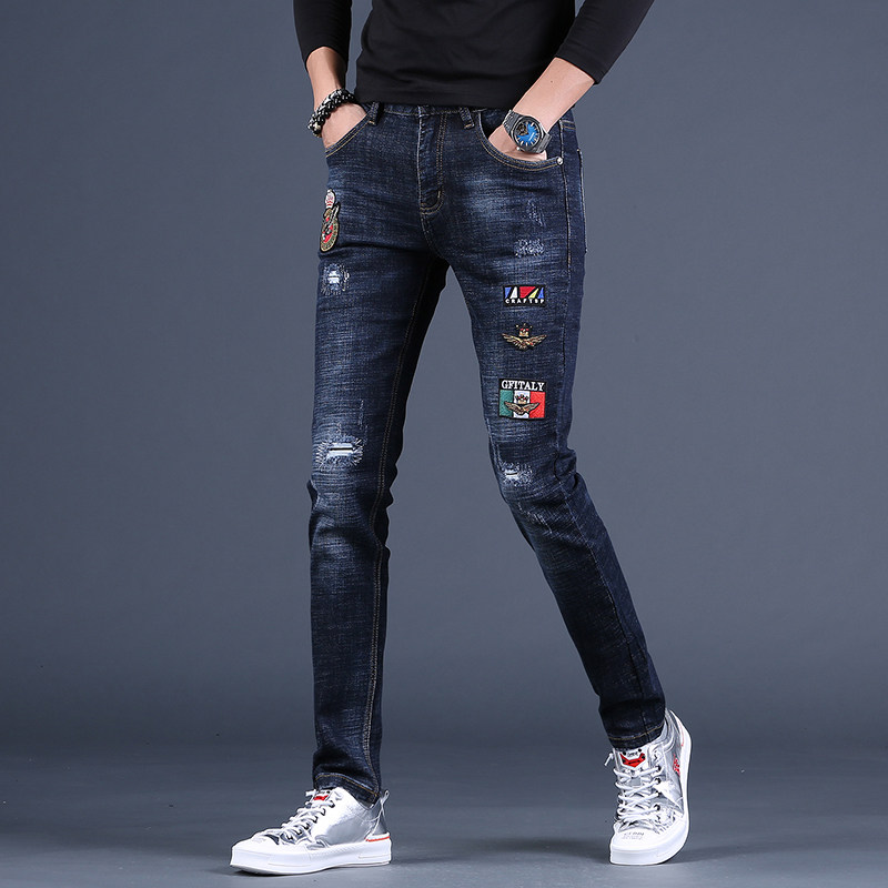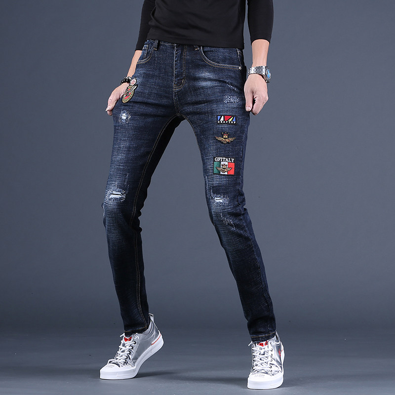 2021春季新款刺绣破洞高端男士牛仔裤男潮牌修身休闲小脚潮流裤子