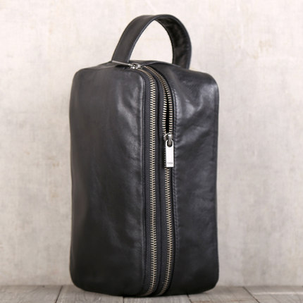 深山九处男士头层牛皮手拿包 真皮休闲皮包手挽包 原创设计
