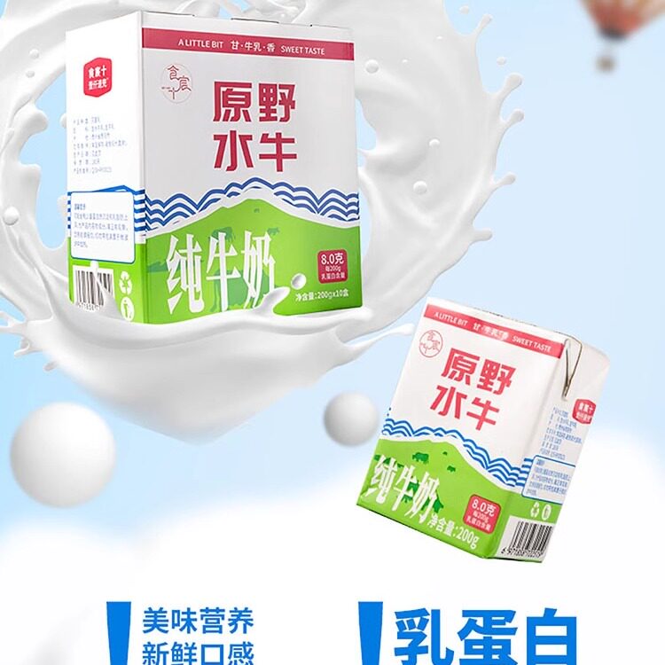 原野水牛纯牛奶食宸十纯牛奶生牛乳早餐奶营养健康200ml*10盒整箱