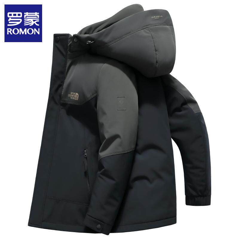 罗蒙男士鹅绒羽绒服可拆卸内胆中年加厚工装爸爸款冬装外套冲锋衣