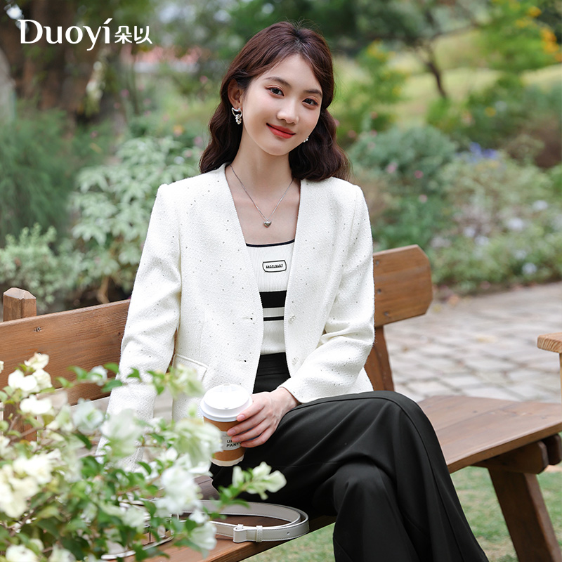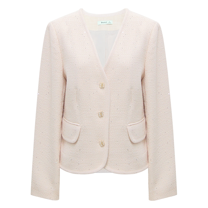 朵以2025春季新款休闲减龄通勤气质小香风亮片V领外套显瘦短上衣