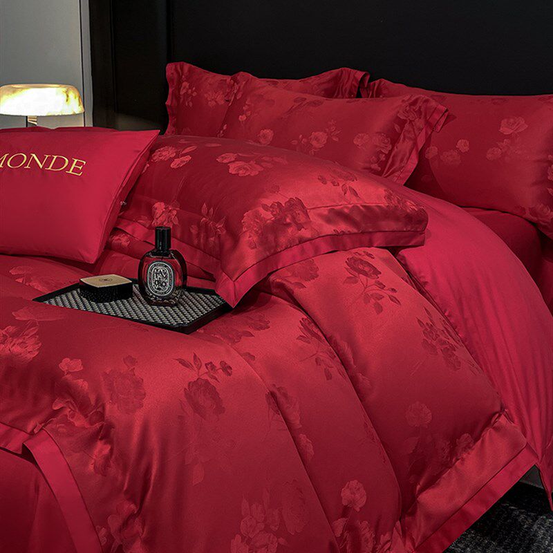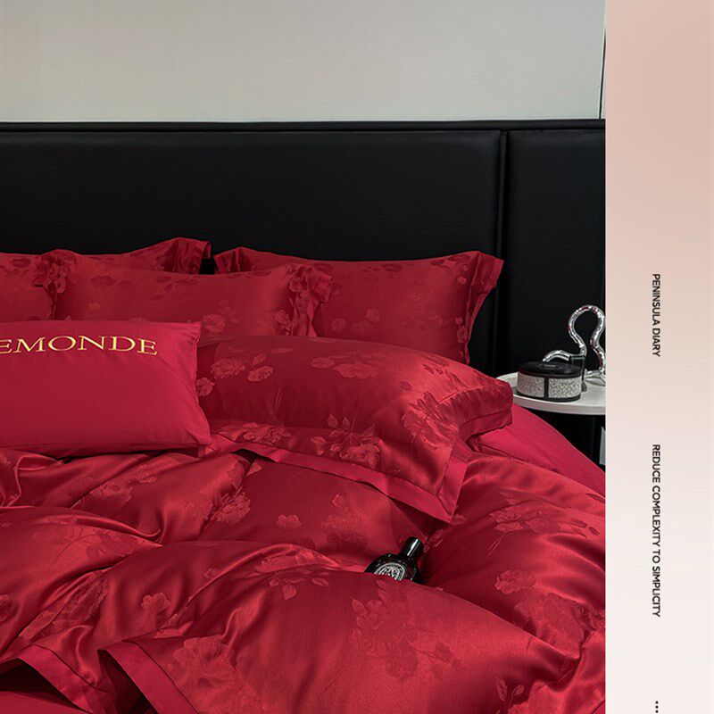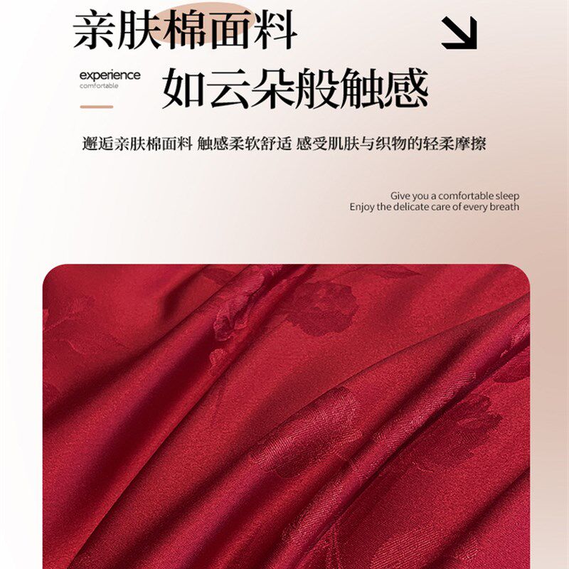 母婴级提花婚庆四件套红色结y婚全棉被套床单新婚喜被床上用品