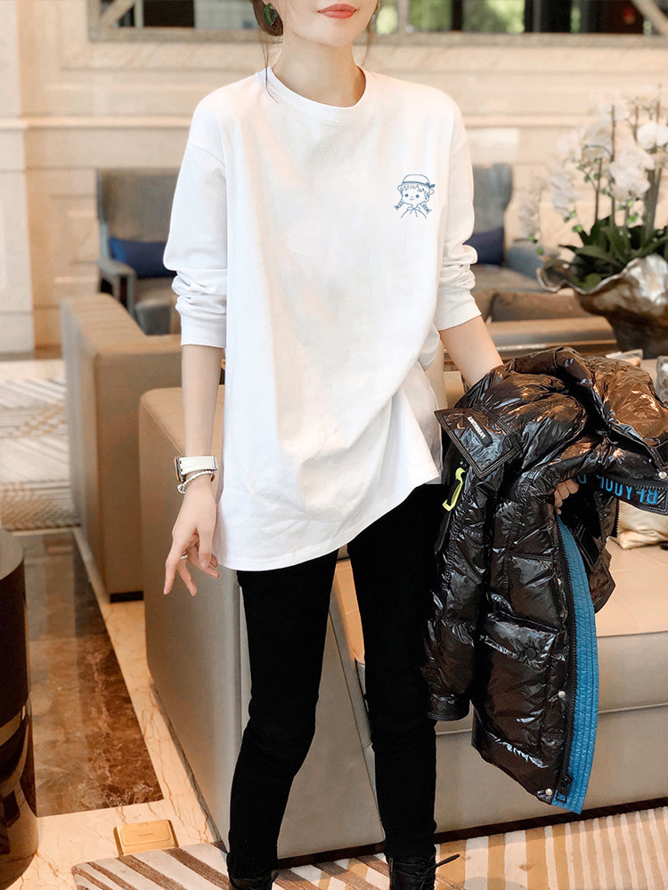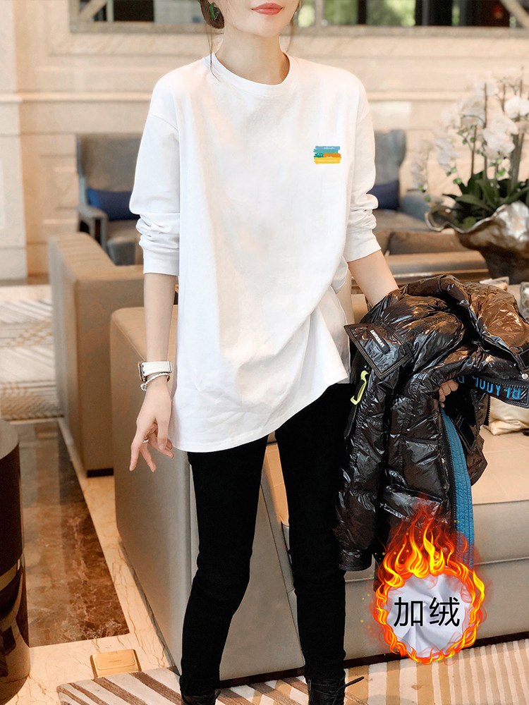 白色内搭打底衫女秋冬季洋气加绒加厚中长款遮屁股长袖t恤上衣服