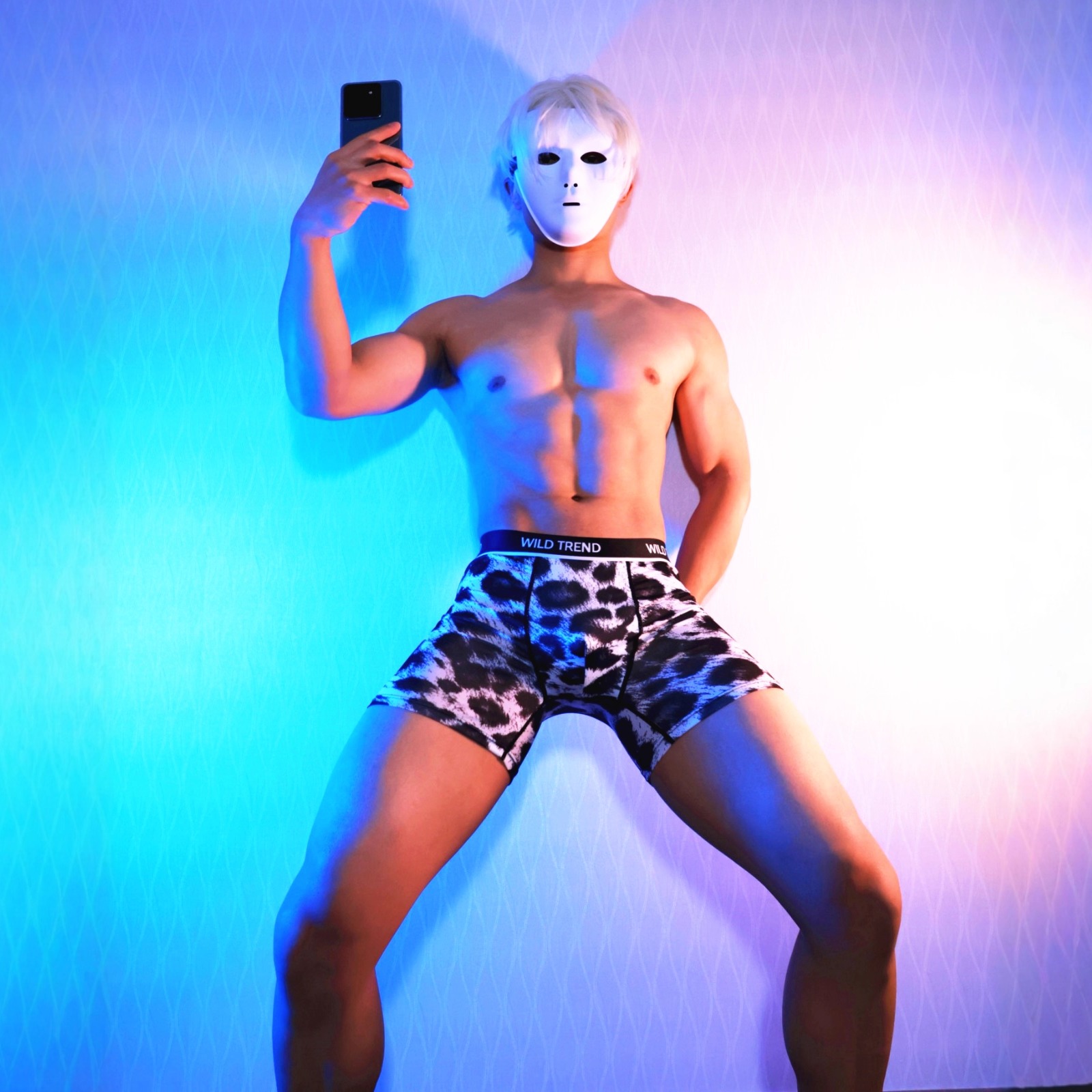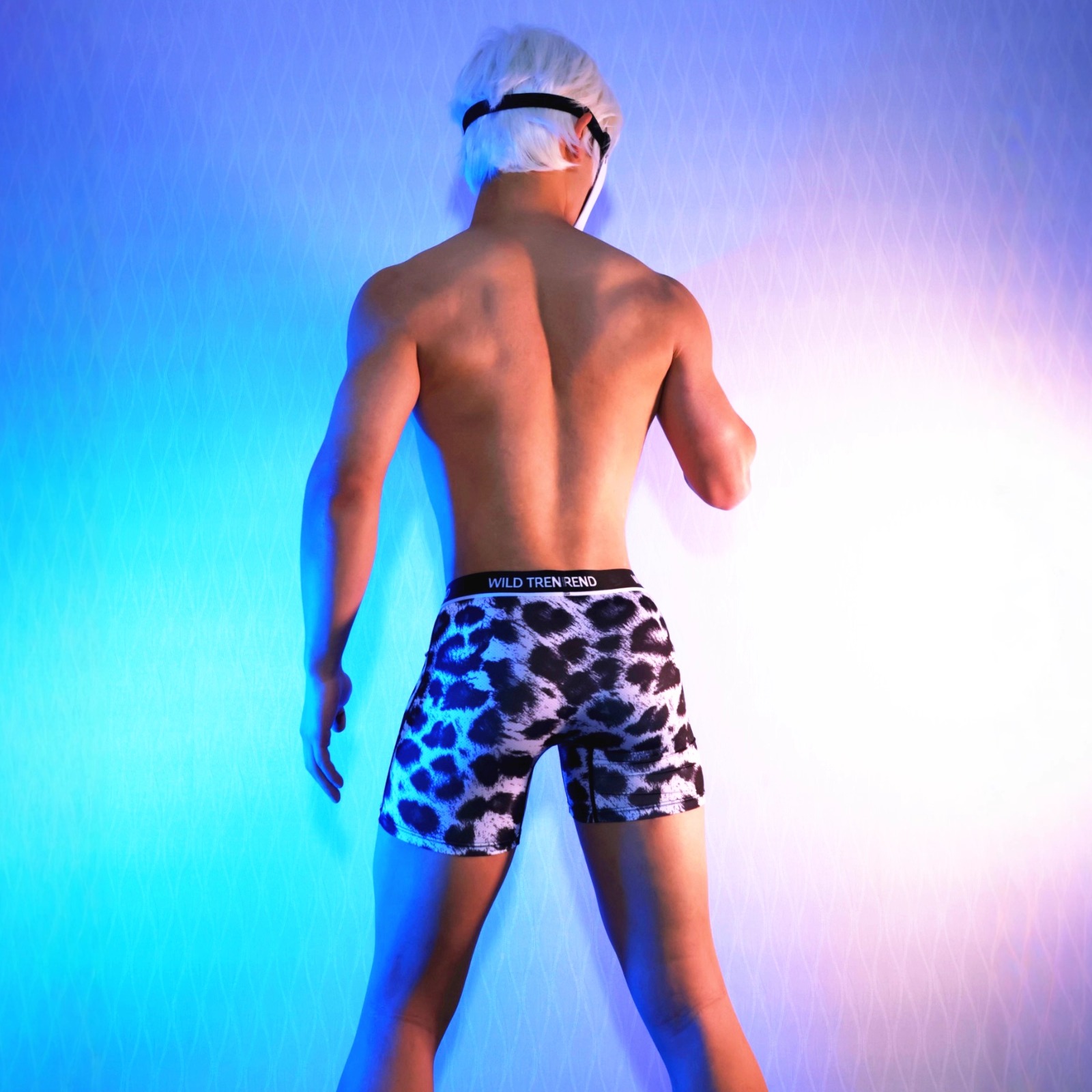 潮流豹纹网孔男士内裤加长平角冰丝透气抑菌运动鲨鱼裤四角裤性感