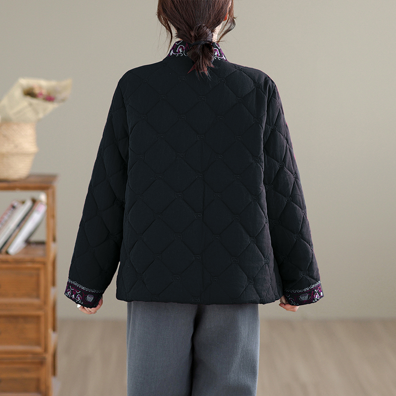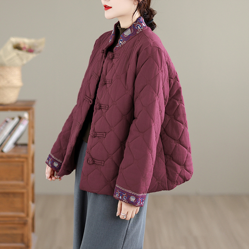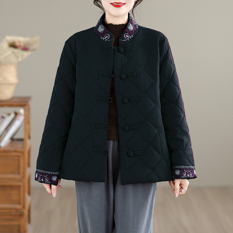 新中式国风撞色刺绣盘扣棉衣外套女冬装改良唐装加棉加厚保暖棉服
