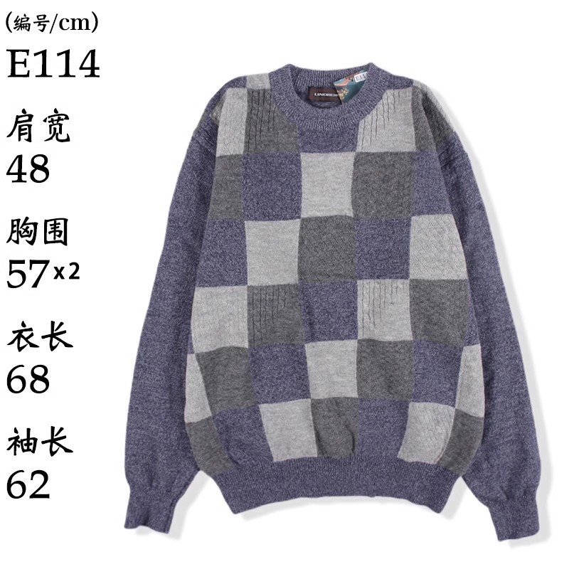 古着vintage纯色羊毛衫套头V领圆领毛衣针织衫男女情侣学院外套79