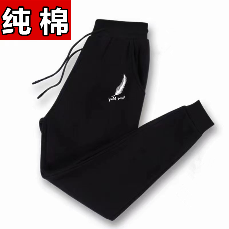 纯棉卫裤男秋冬款加绒加厚保暖束脚裤宽松大码休闲运动长裤子男款