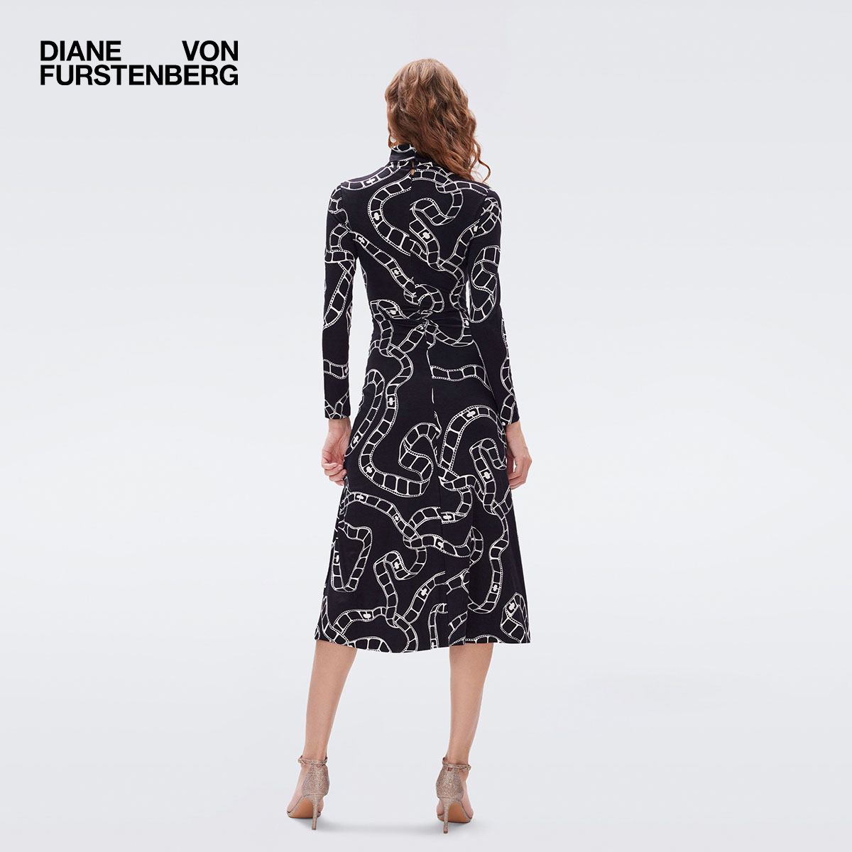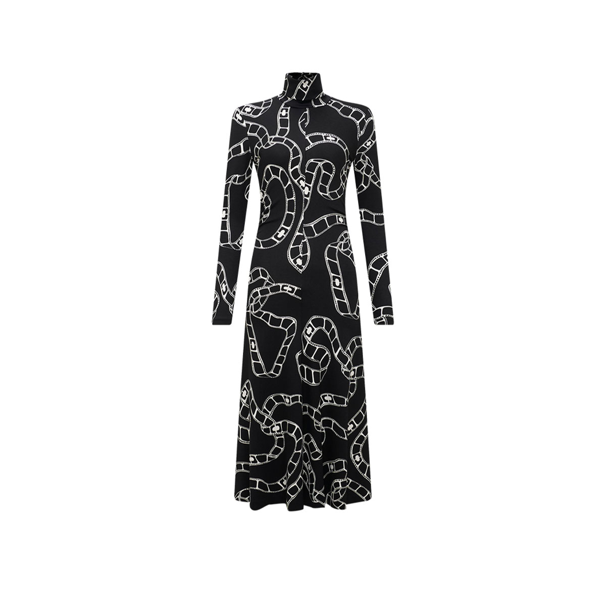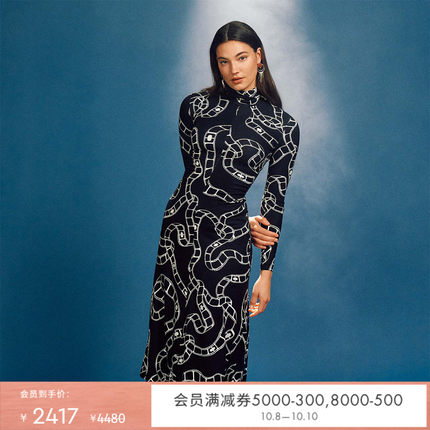 [博主同款]DVF气质高领收腰印花海文针织长袖中长连衣裙DL3R023