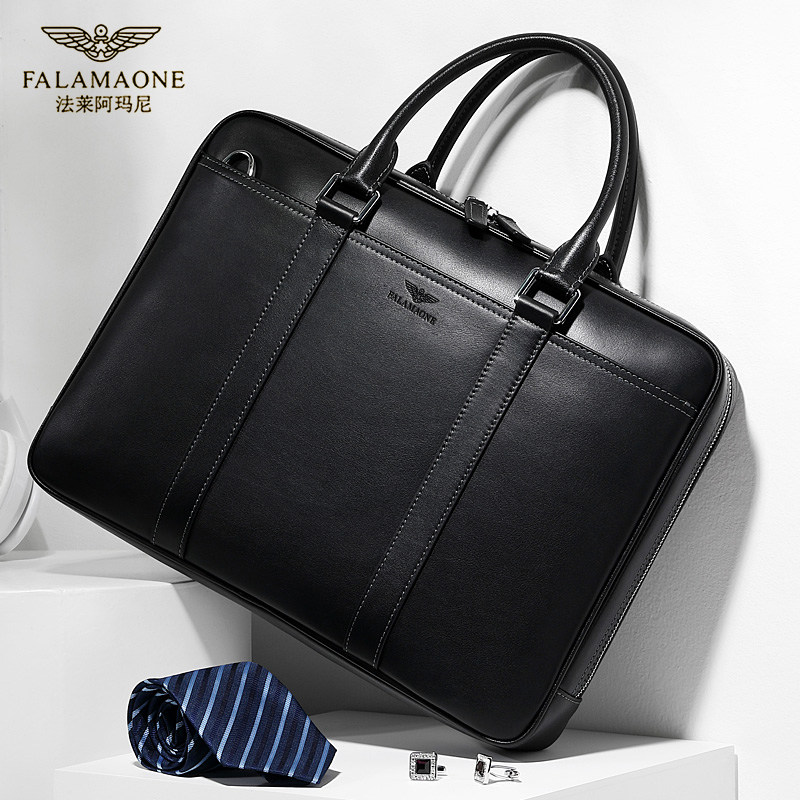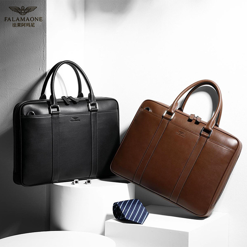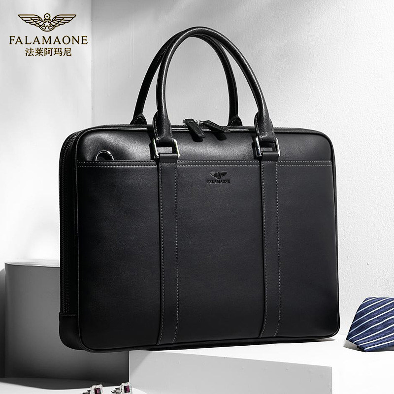 正品法莱阿玛尼真皮男士手提包牛皮公文包男款挎包旅行包袋2026款