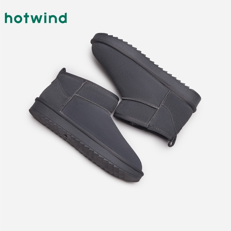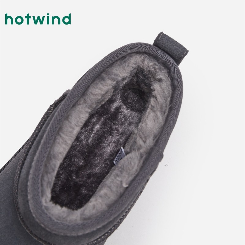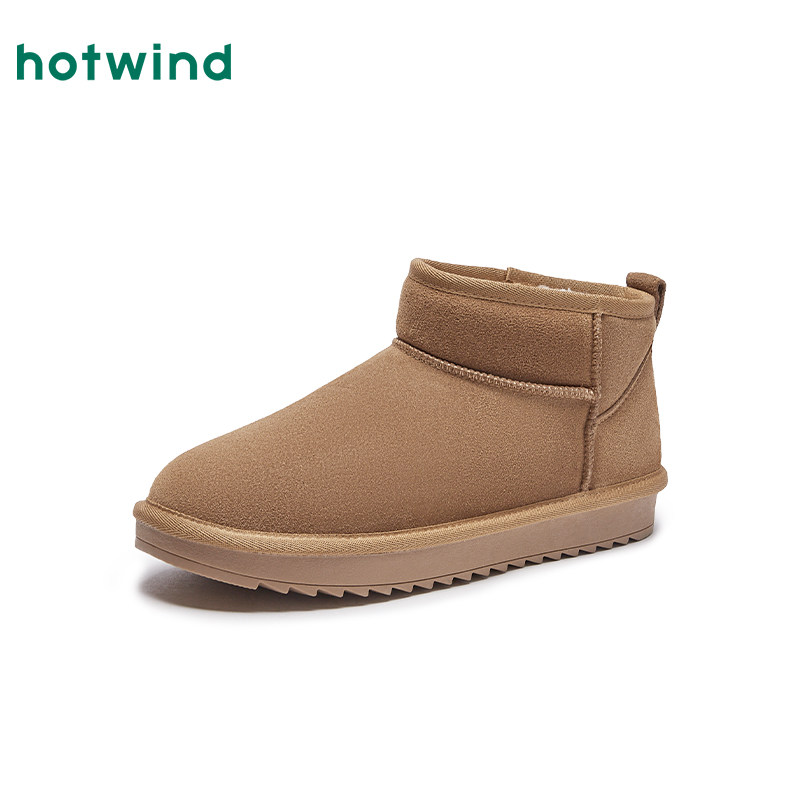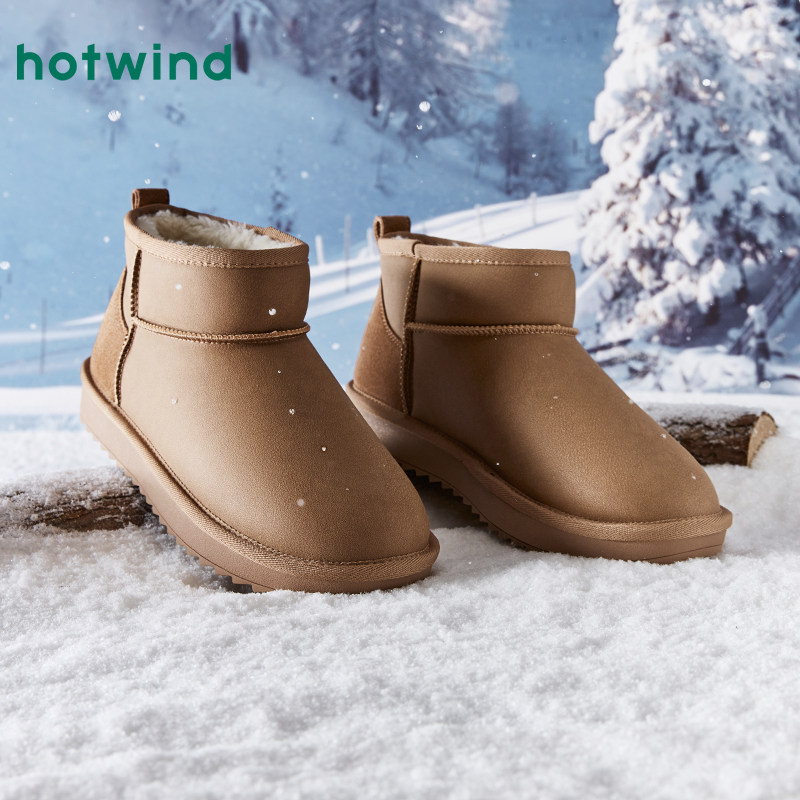 热风男鞋冬季新款雪地靴男士时尚加绒加厚雪地靴保暖短筒休闲靴潮