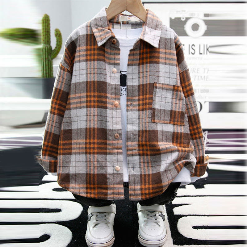 男童衬衫长袖春秋款2024新款儿童装中大童格子衬衣春装男孩上衣潮