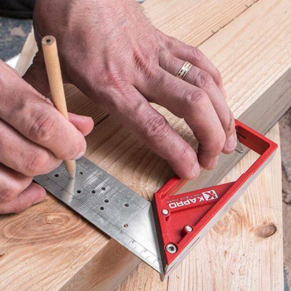 以色列KAPRO不锈钢直角尺洞洞尺45 度90度木工尺标注钢尺划线角度