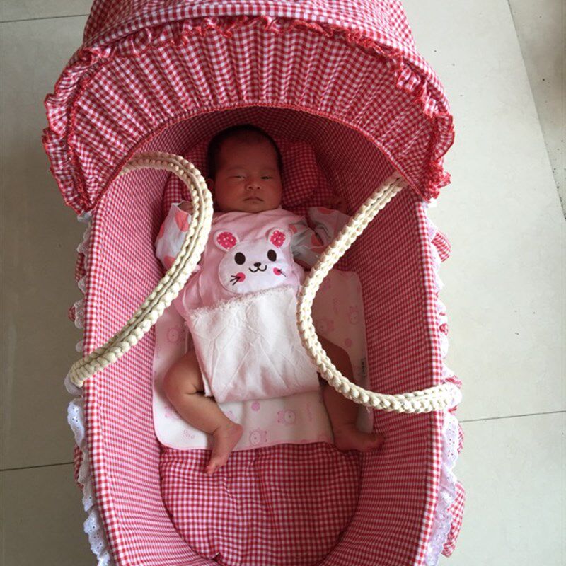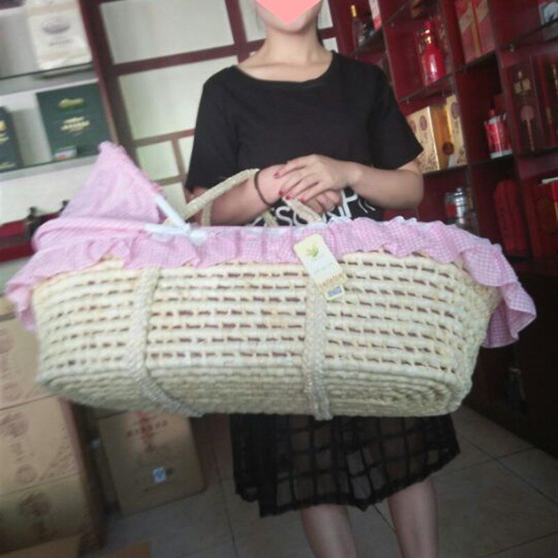 新生婴儿出院提篮便携草编睡篮车载手提篮筐公主床婴儿百岁照道具