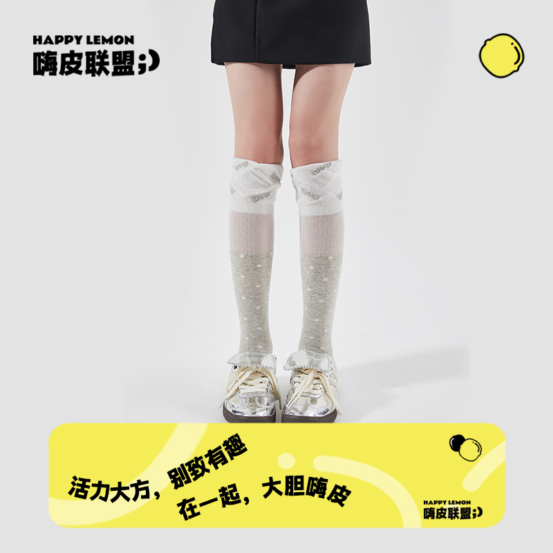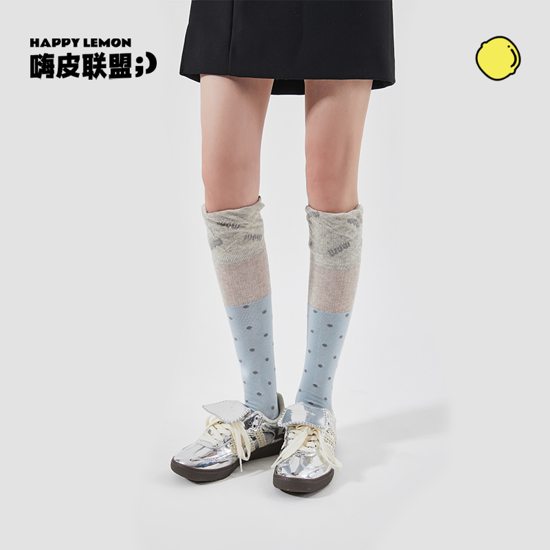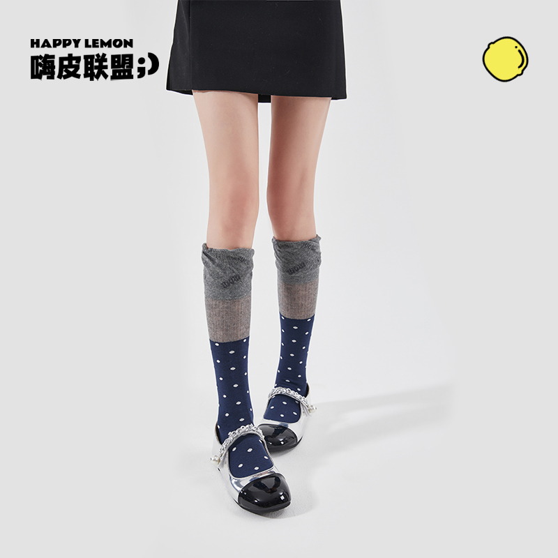 袜子女夏季薄款中筒袜波点小腿袜女长筒袜芭蕾风学院风堆堆袜棉