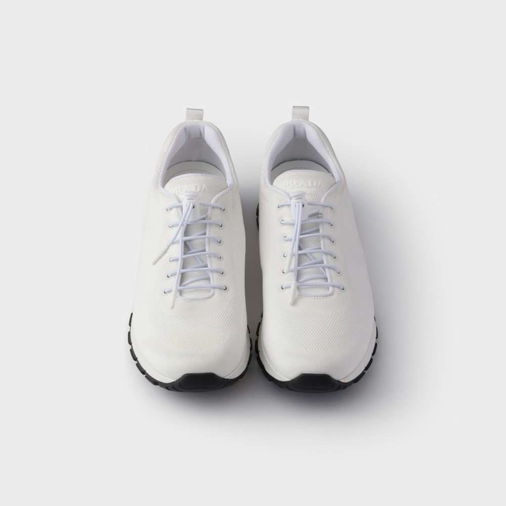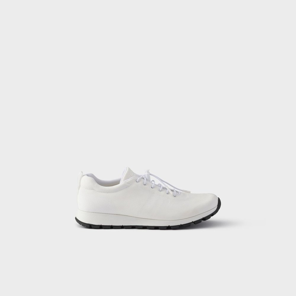 自营欧洲直邮Prada普拉达 男士白色再生聚酰胺徽标压印运动鞋跑鞋