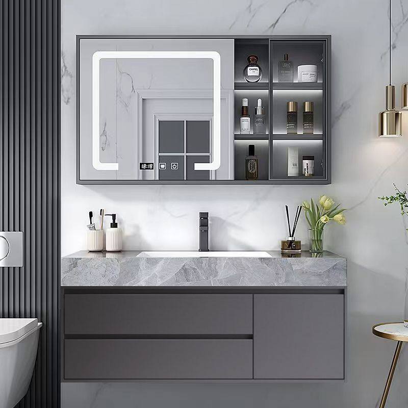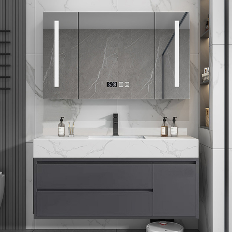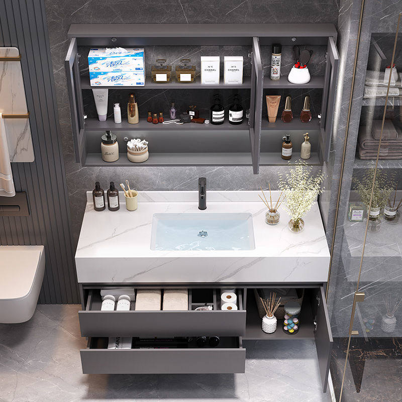 岩板无缝一体盆智能浴室柜组合免漆实木卫生间洗漱台洗脸台洗手盆