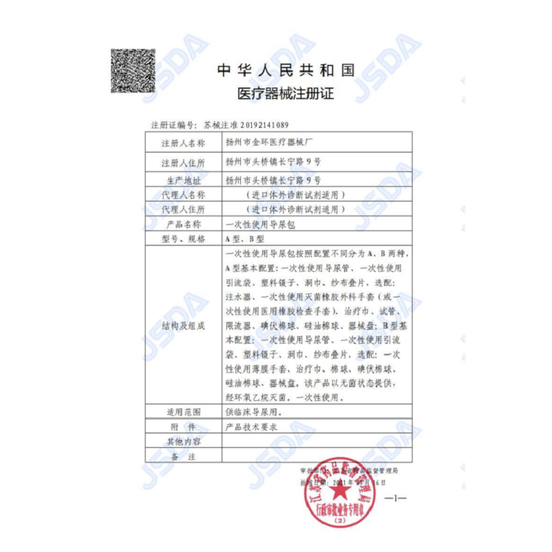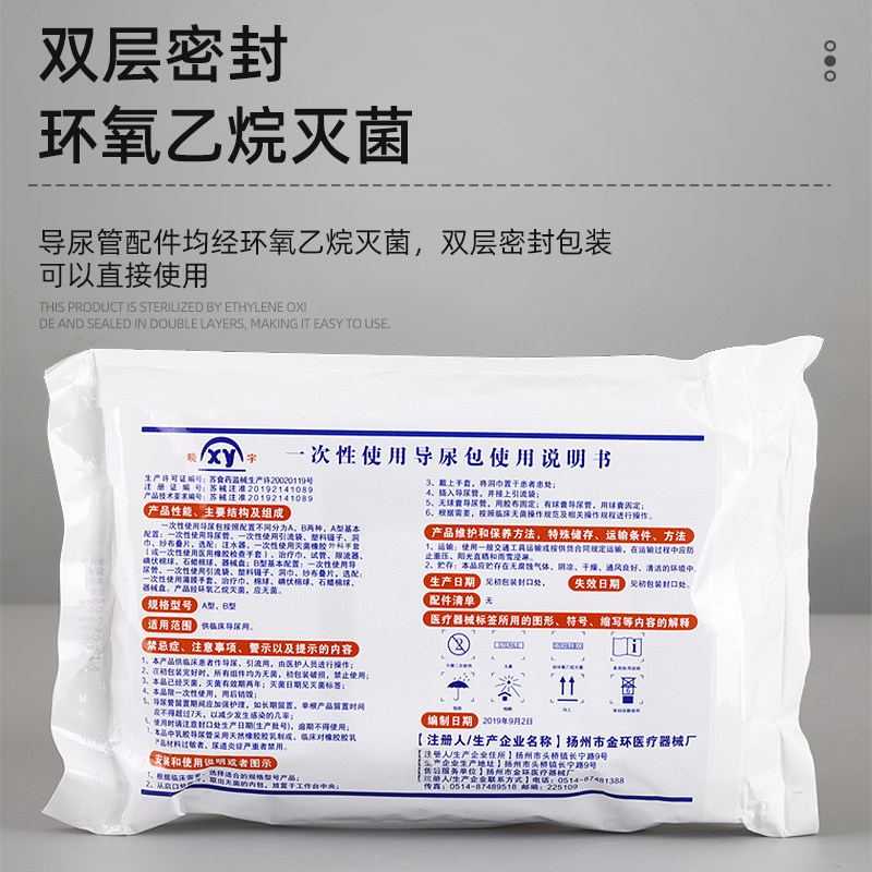 金环晓宇一次性使用导尿包医用乳胶双腔男女老人无菌接尿袋引流管