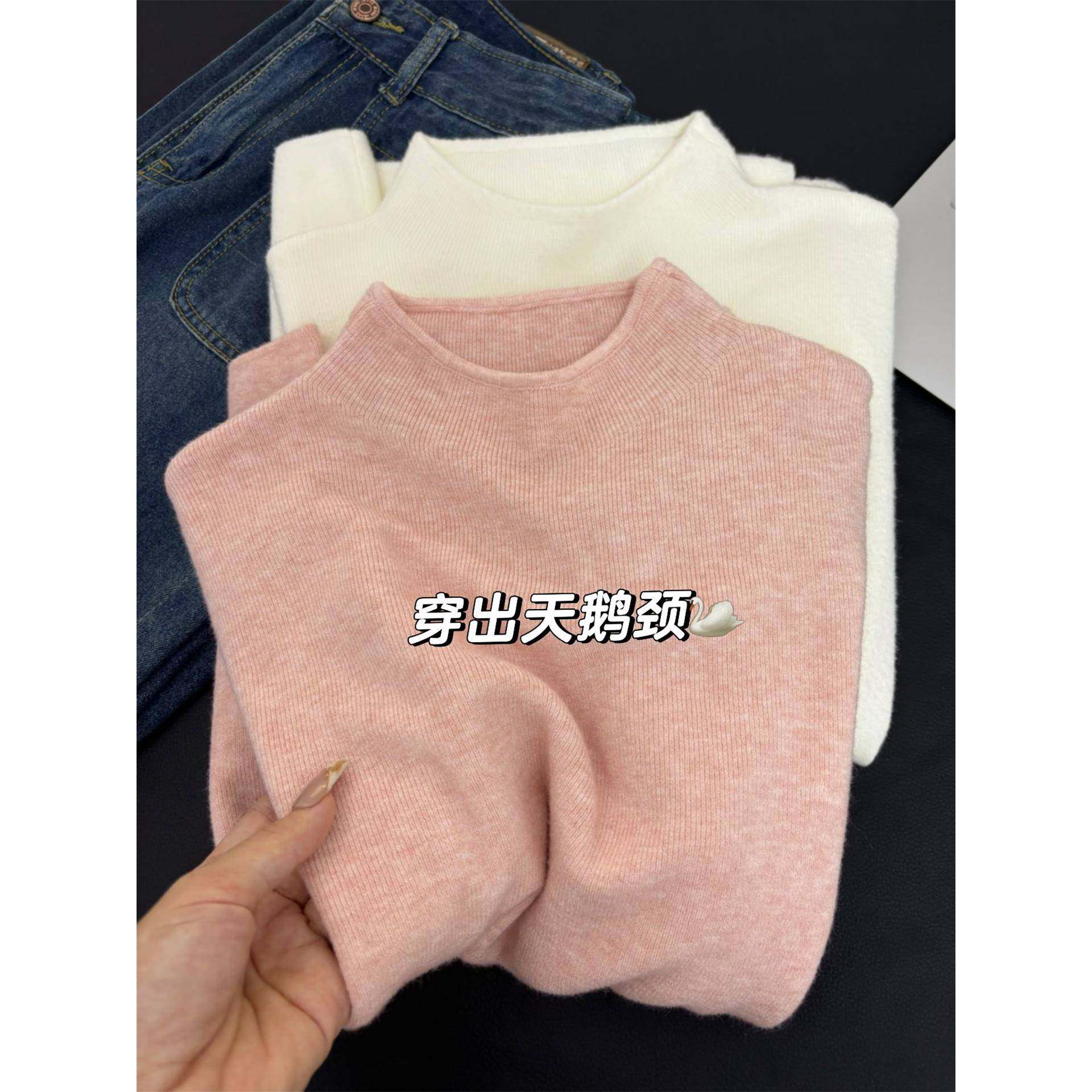 软糯深灰色半高领叠穿打底衫女秋冬高级感小立领内搭毛衣针织上衣