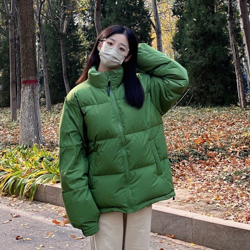 绿色短款立领羽绒棉衣棉服女冬加厚2025年新款韩版宽松情侣面包服