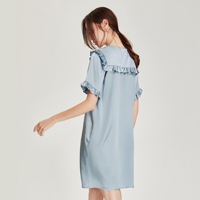 珊目尔2025年新款夏季短袖真丝睡裙100%桑蚕丝宫廷风睡衣女家居服