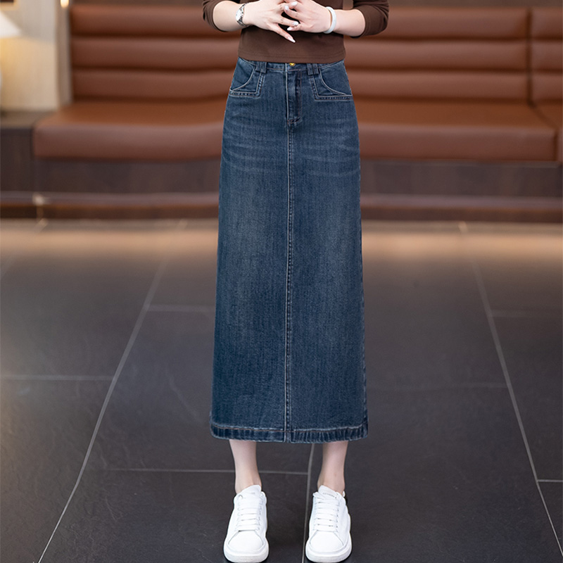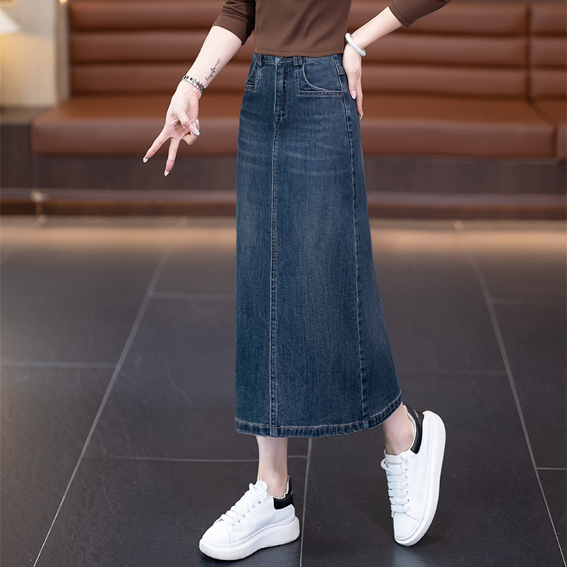INS风牛仔直筒裙女秋季2025复古半身裙高腰中长裙过膝包臀裙