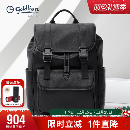 金利来轻奢时尚双肩包男新款商务休闲背包大容量牛皮旅行包书包