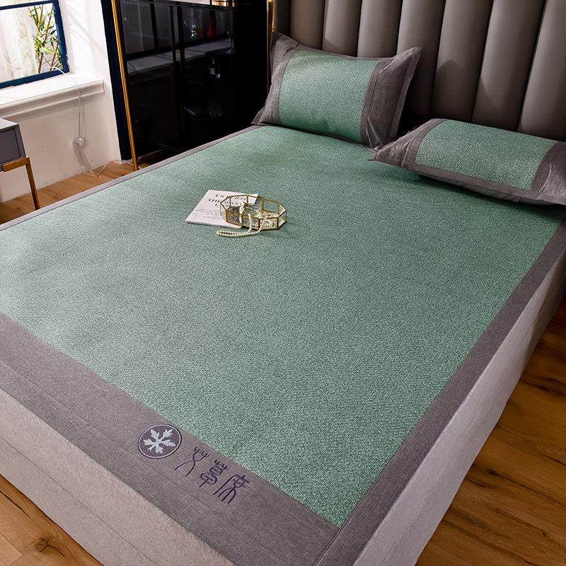 远梦家纺艾草冰藤席夏季冰丝凉席三件套可水洗折叠席空调双人床席