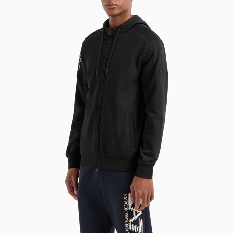 Armani阿玛尼EA7男士2025新款春秋加绒连帽卫衣休闲运动夹克外套