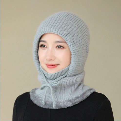针织帽女冬季加绒加厚女士妈妈帽子围脖口罩一体连体保暖帽骑行帽
