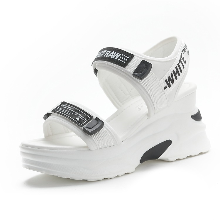 坡跟8CM增高厚底女士凉鞋魔术贴鱼嘴小个子休闲女鞋2025夏季新款