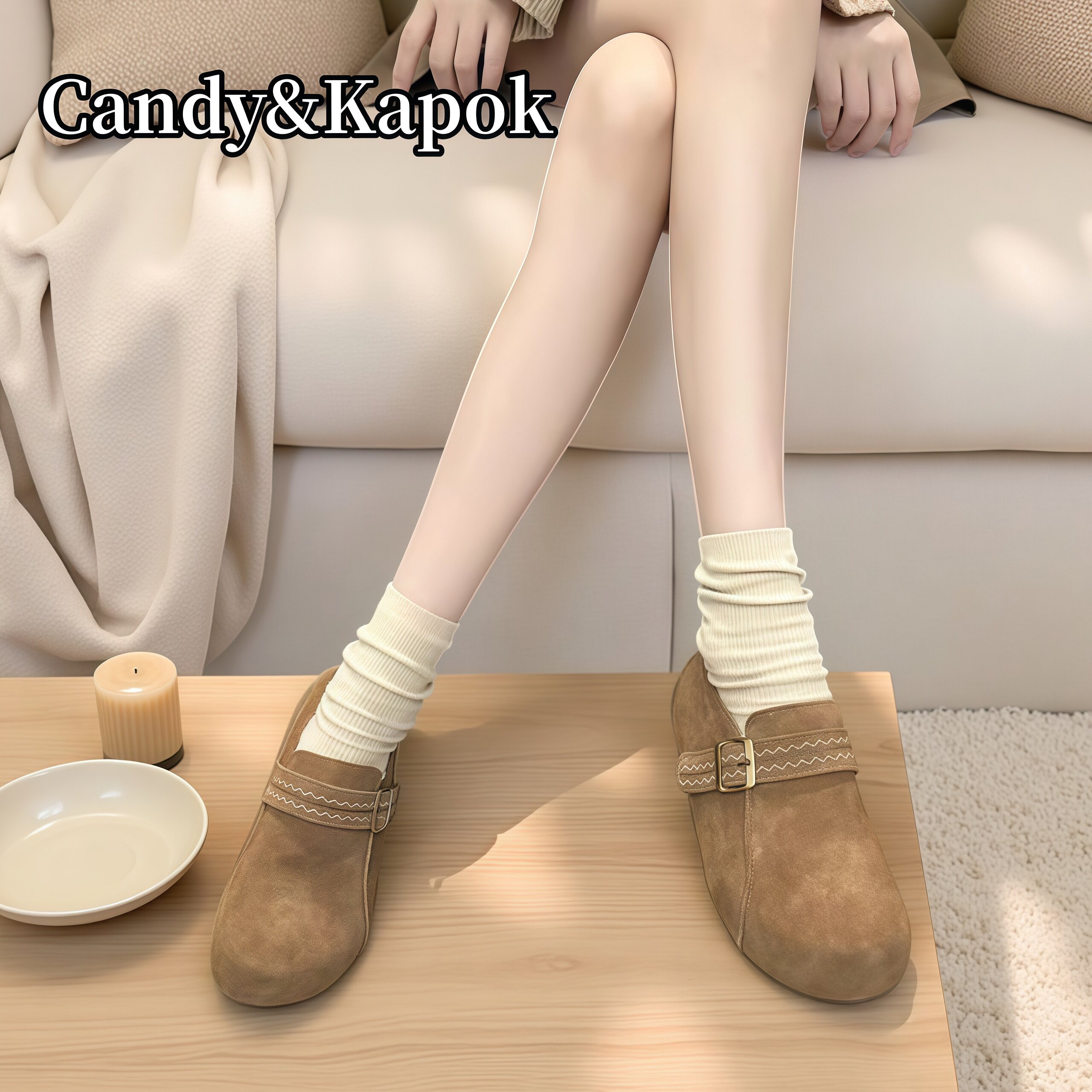 Candy&Kapok春季新款软底全包勃肯鞋女一脚蹬内增高懒人鞋百搭
