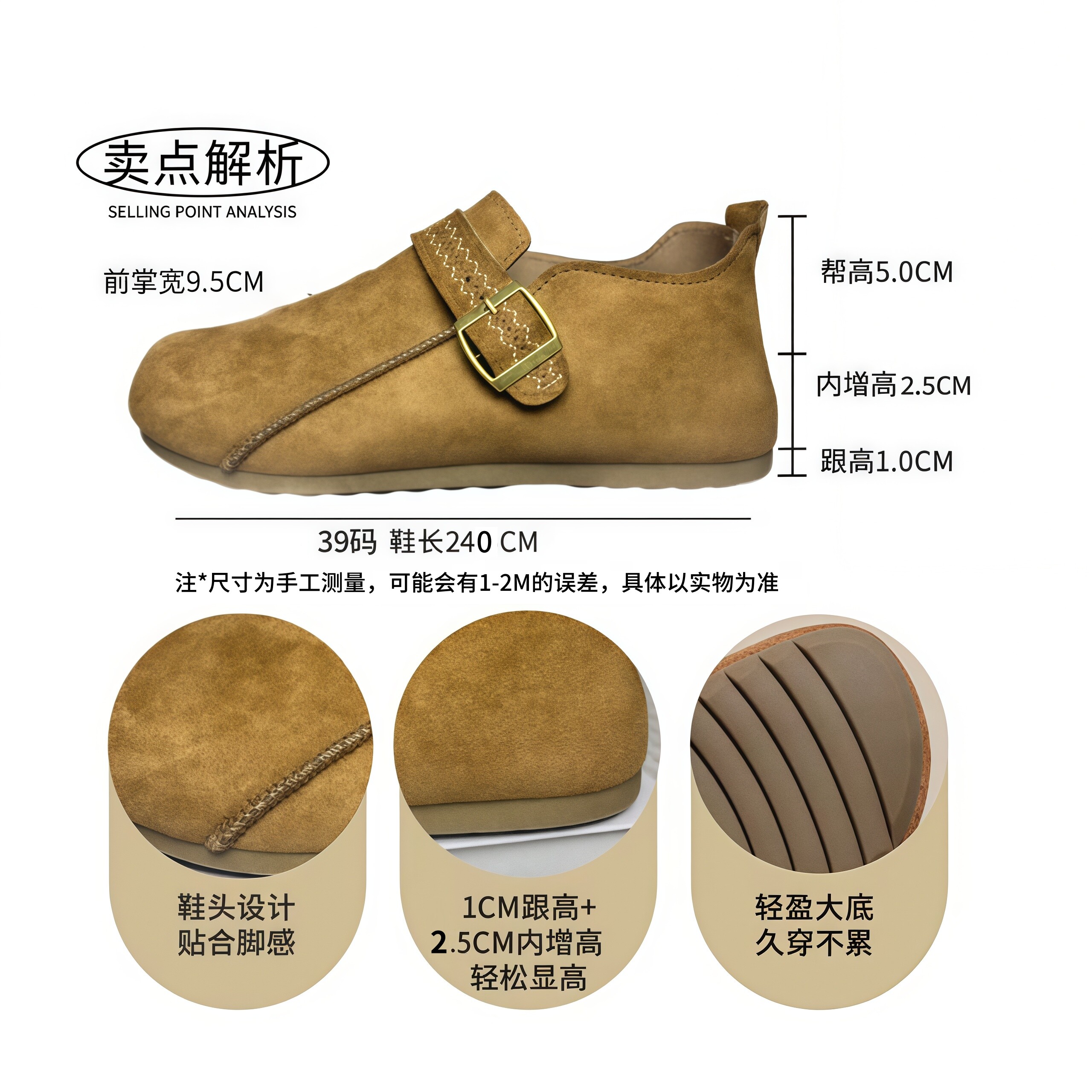 女款内增高软底全包勃肯懒人鞋