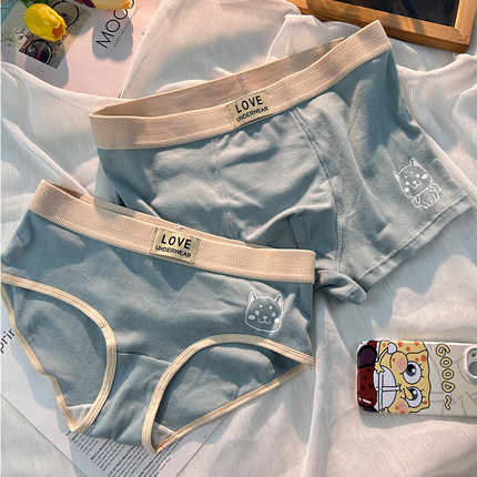 甜米家的情侣内裤纯棉一男一女性感纯欲可爱卡通夫妻内衣透气套装