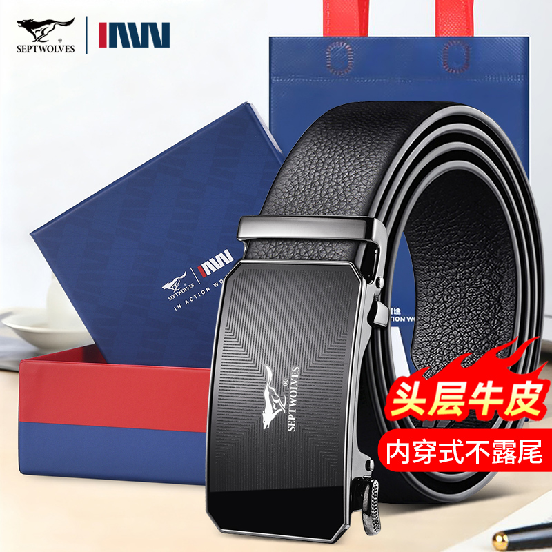 七匹狼男士皮带真皮内扣式自动扣腰带牛皮商务休闲内穿裤带男正品