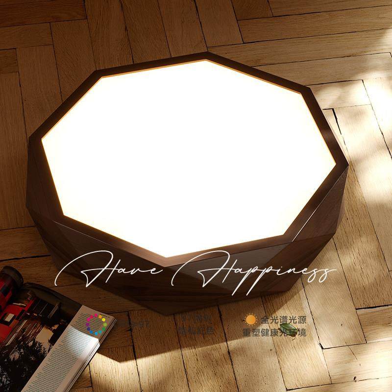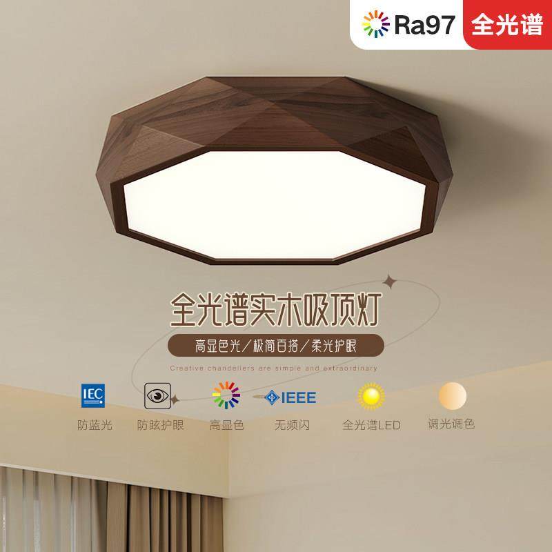 中古风客厅灯卧室灯吸顶灯护眼新中式胡桃木色实木简约智能灯