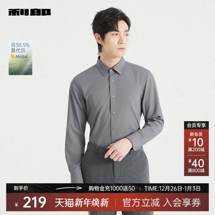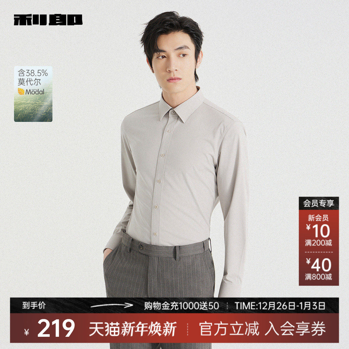 【莫代尔】利郎官方 长袖衬衫男士商务休闲纯色2025秋季新款衬衣