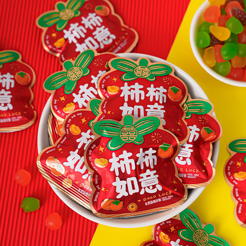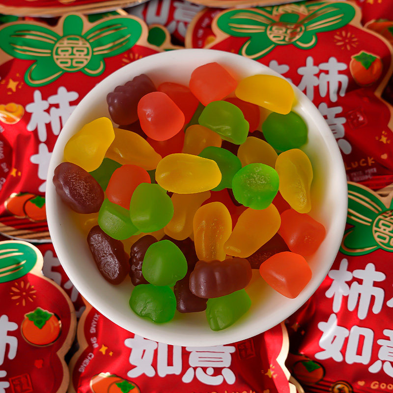 柿柿如意果汁软糖混合水果味QQ橡皮糖年货订婚结婚乔迁糖果水果糖