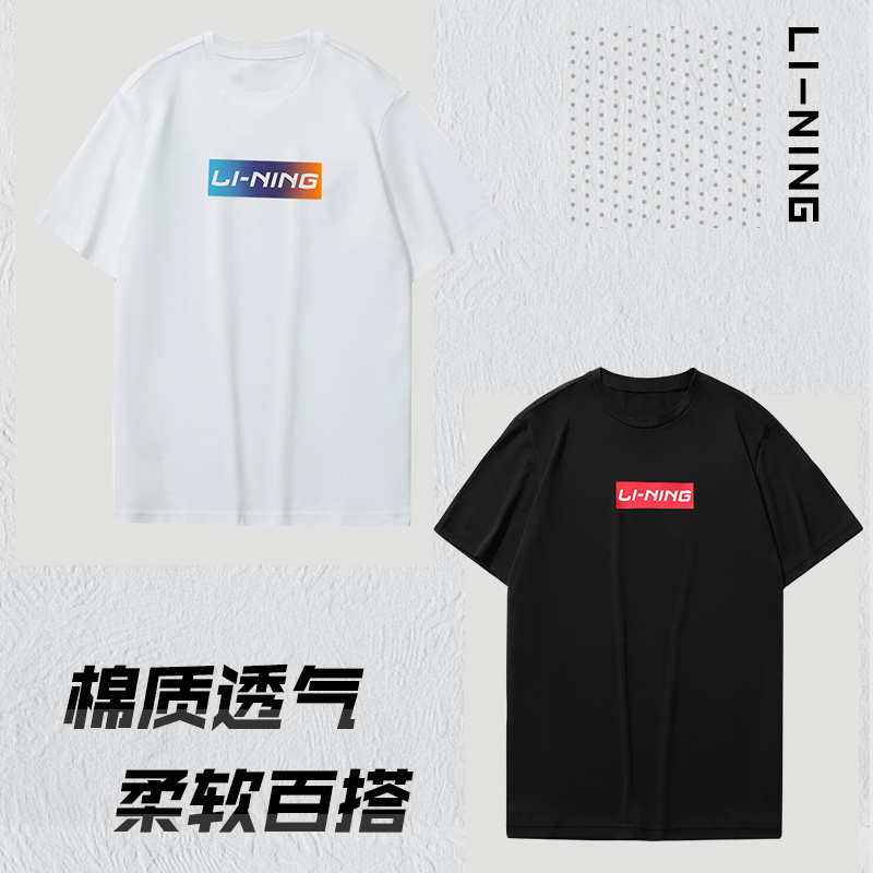 李宁短袖T恤男夏季运动圆领半袖宽松情侣2024新款休闲文化衫体恤
