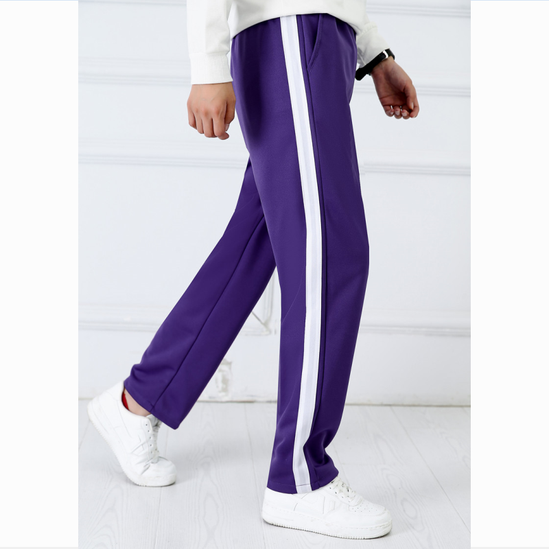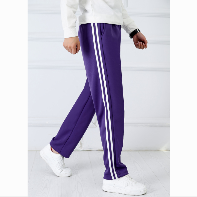 紫色校服裤子男女初高中学生直筒宽松两道杠运动长裤春秋冬季加绒