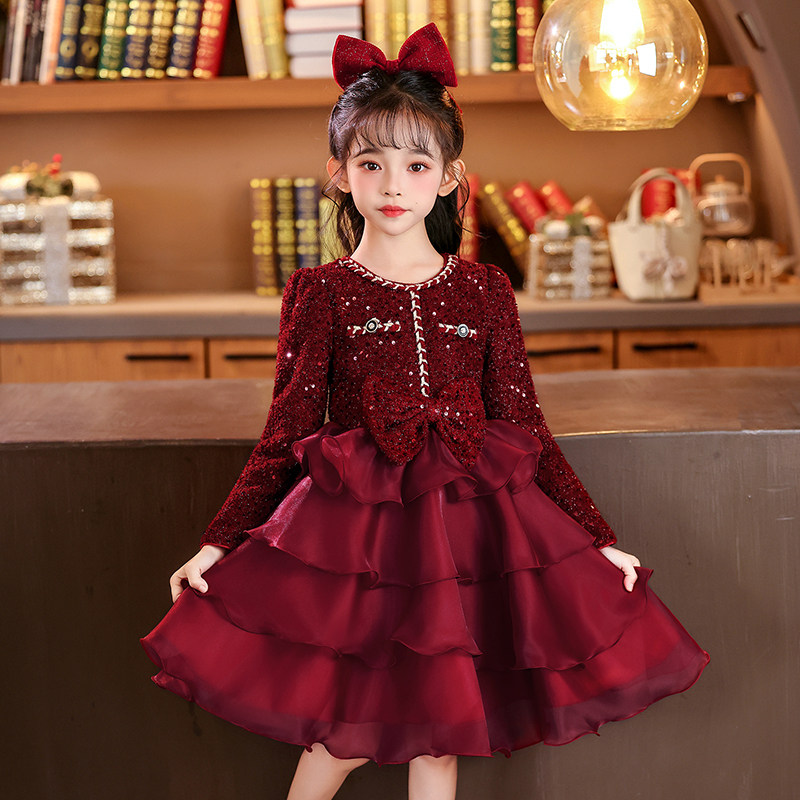 过年服女童连衣裙冬2025冬装新款儿童新年衣服公主裙红色裙子冬季