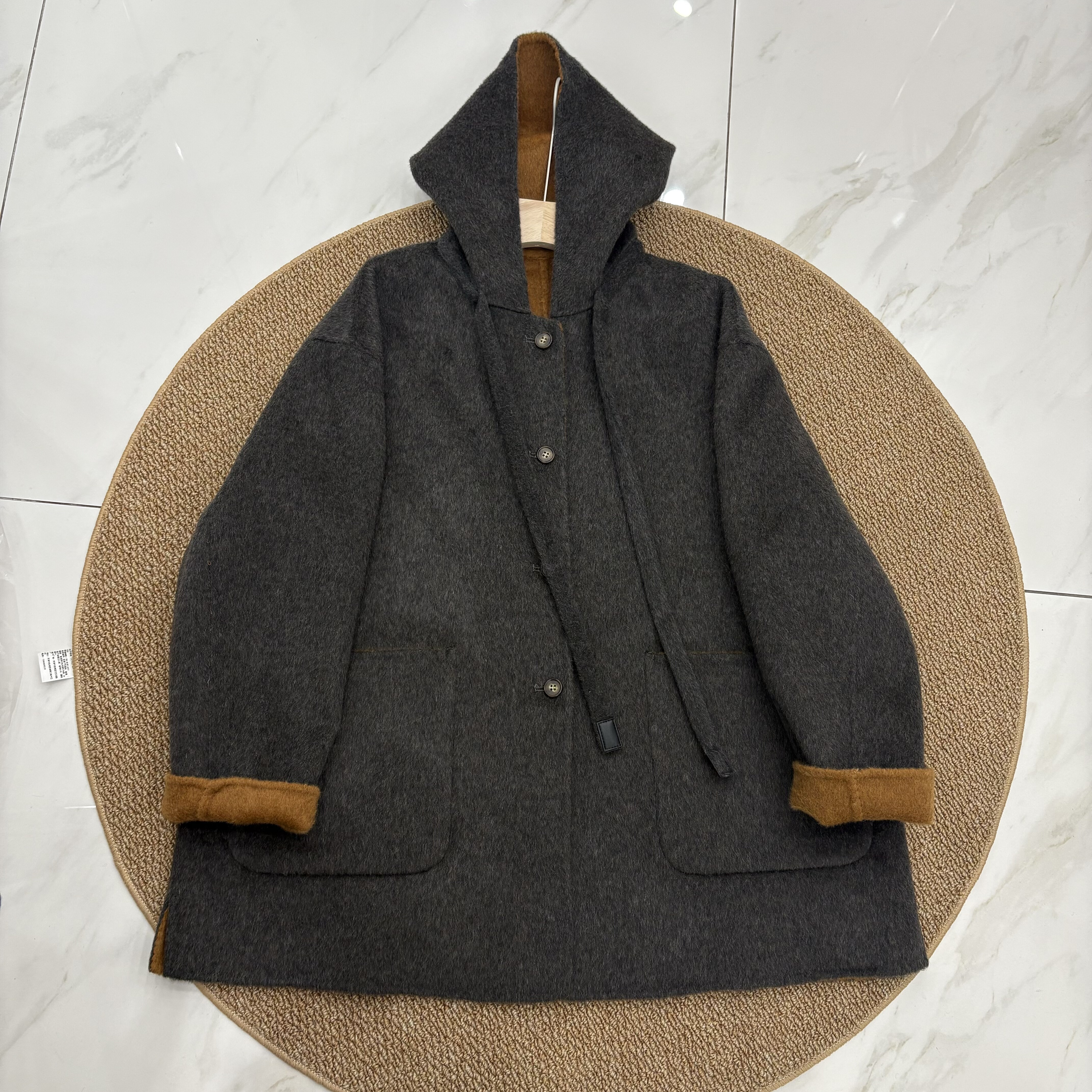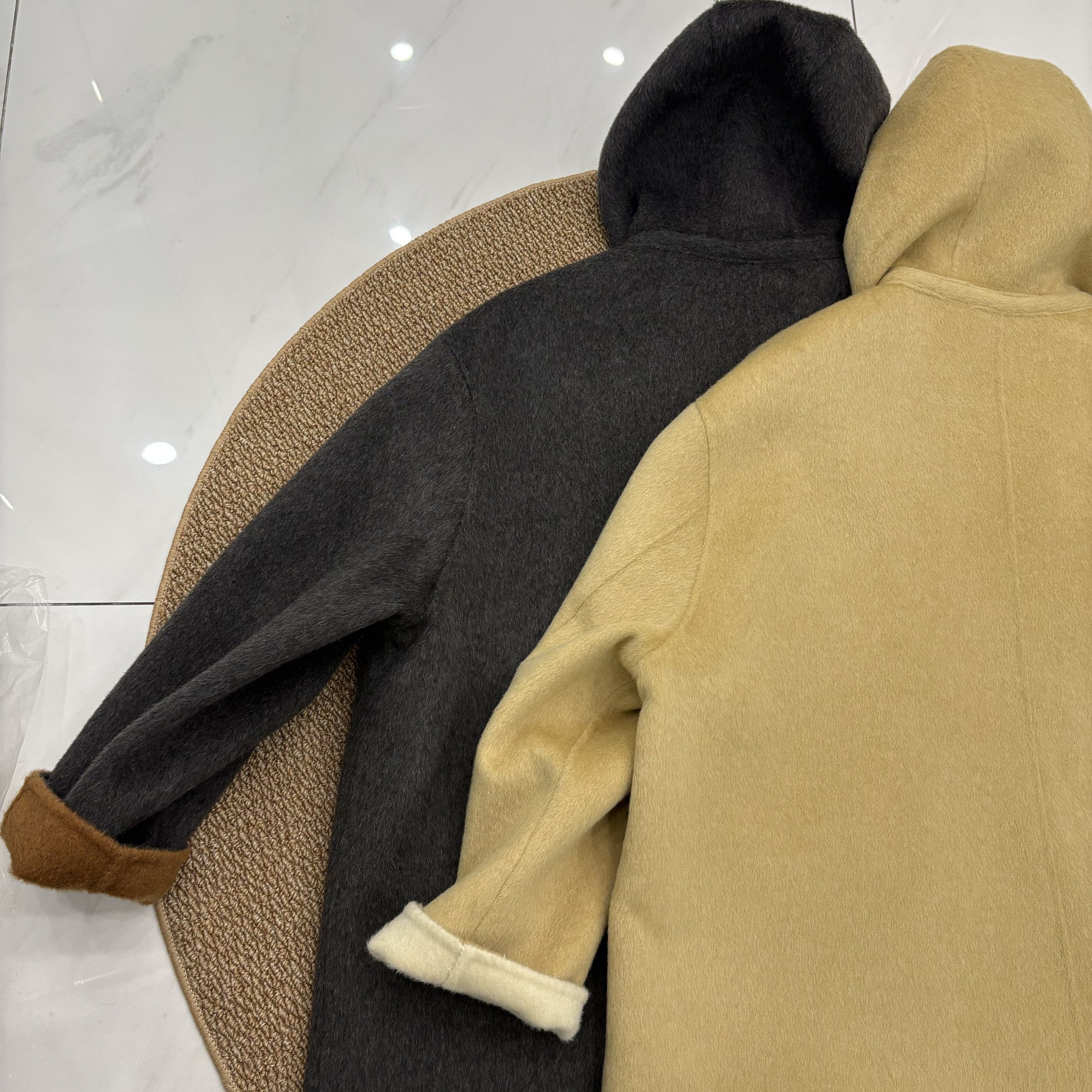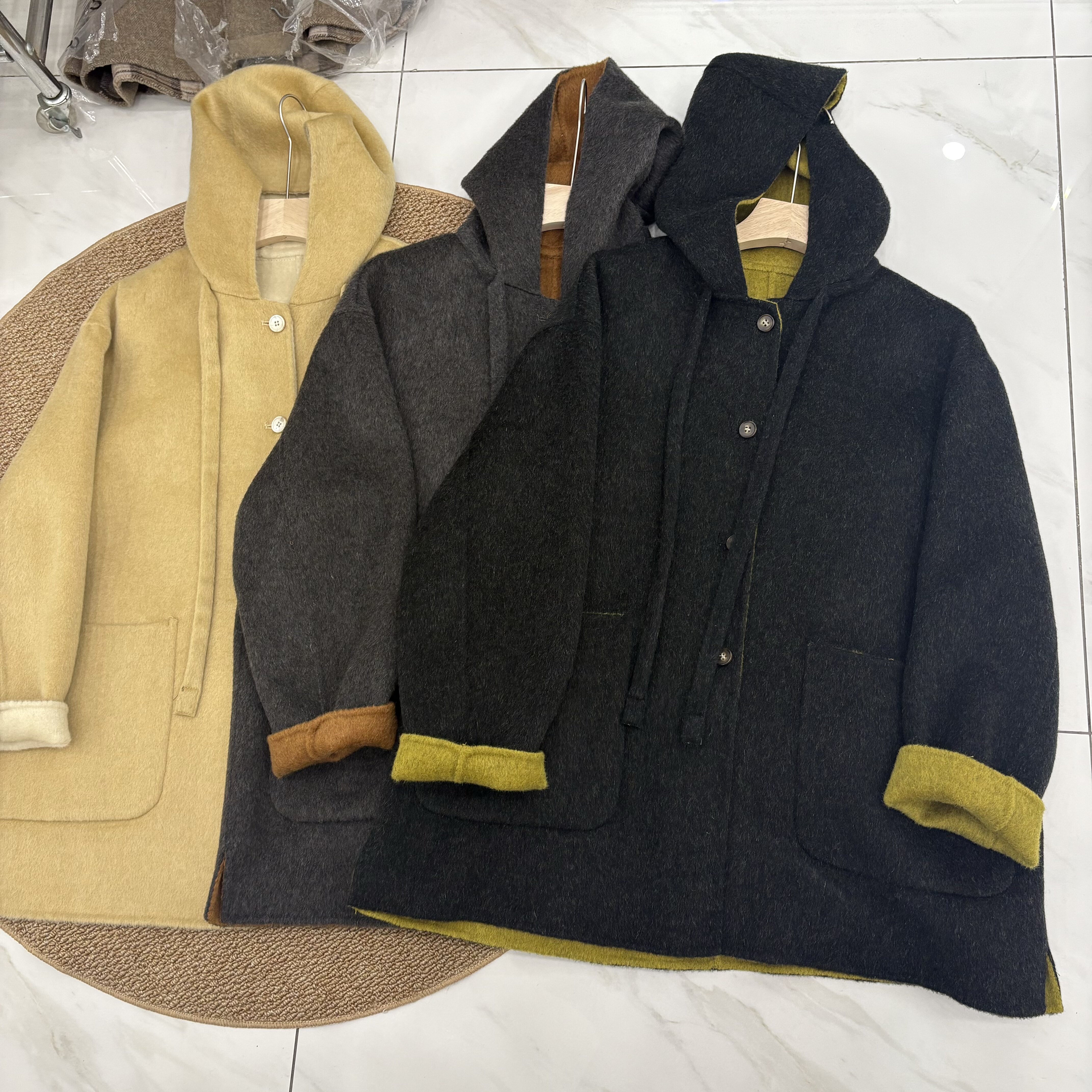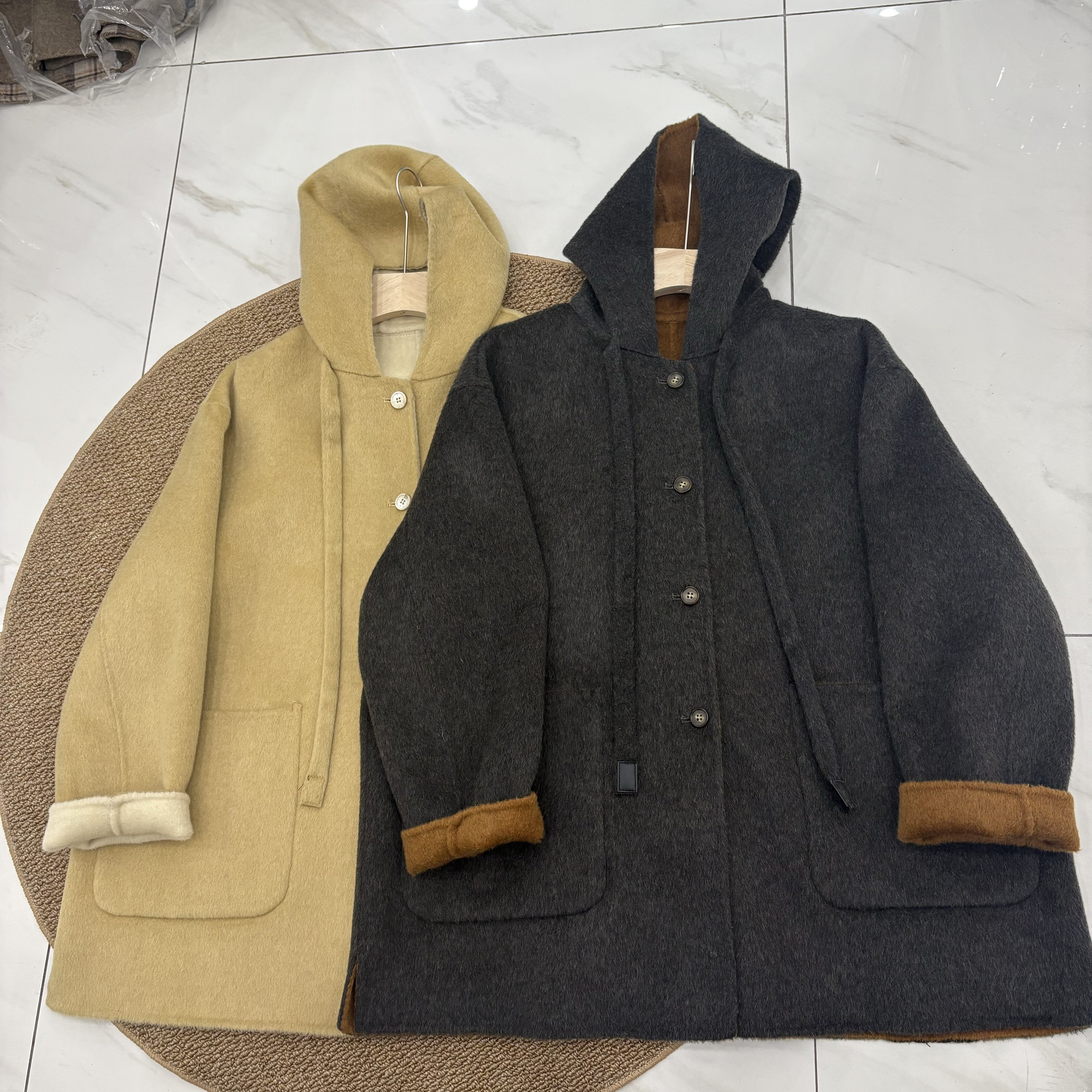 韩版双面羊绒大衣中长款女25秋冬新款连帽宽松显瘦小个子羊毛外套
