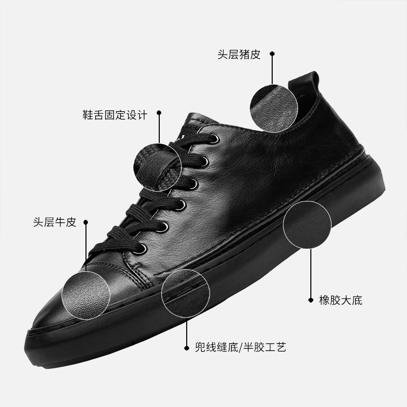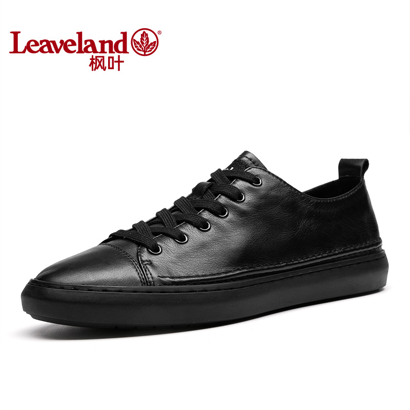 枫叶男鞋秋季透气休闲皮鞋真皮软底鞋子男小黑鞋新款黑色板鞋百搭