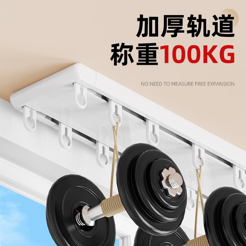 2025名巧静音轨道双轨滑轨双排滑道窗帘杆窗帘盒一体式双层铝合金