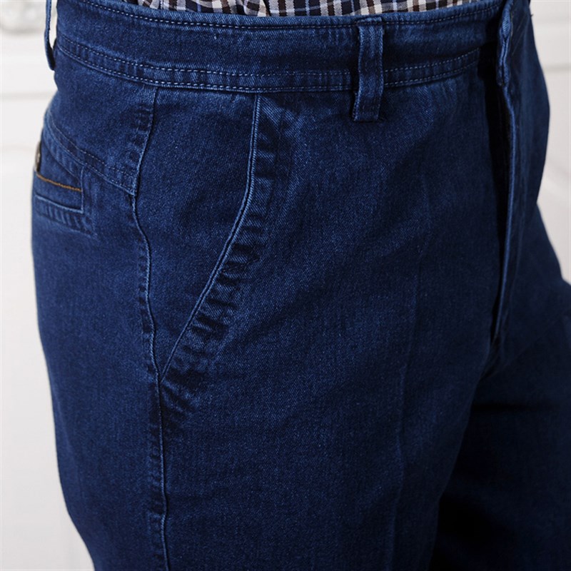春秋商务中老年弹力牛仔裤男士宽松大码秋冬款加厚高腰牛仔裤