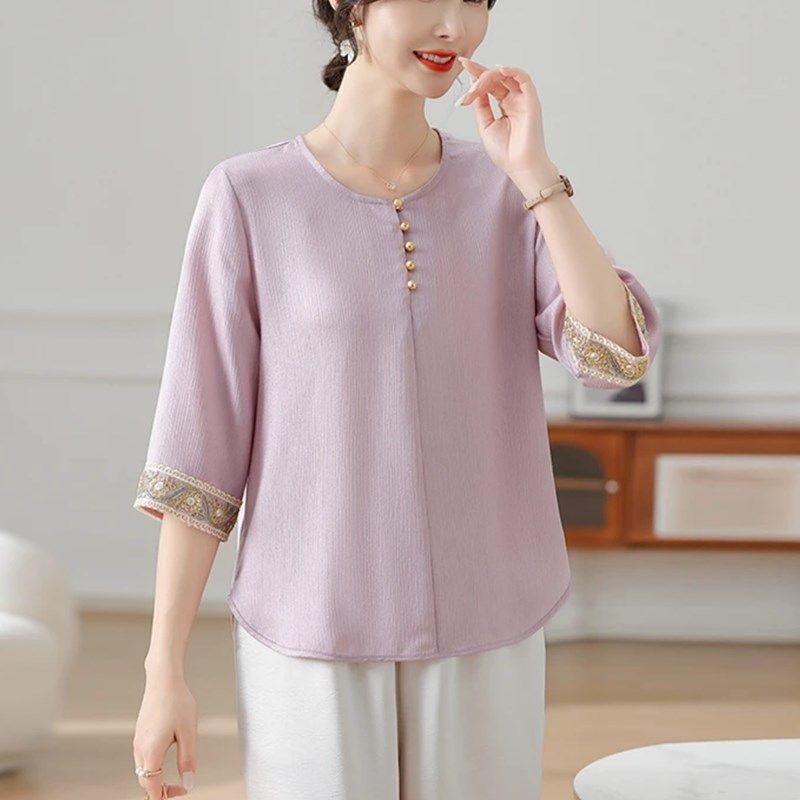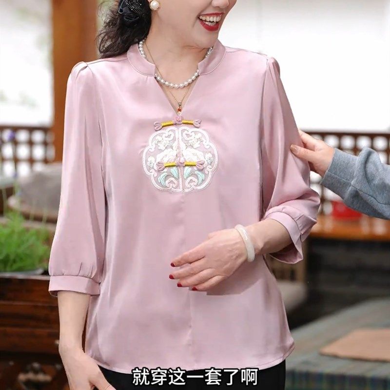 母亲节2025新款时尚妈妈夏装套装中老年女装上衣中年人短袖两件套