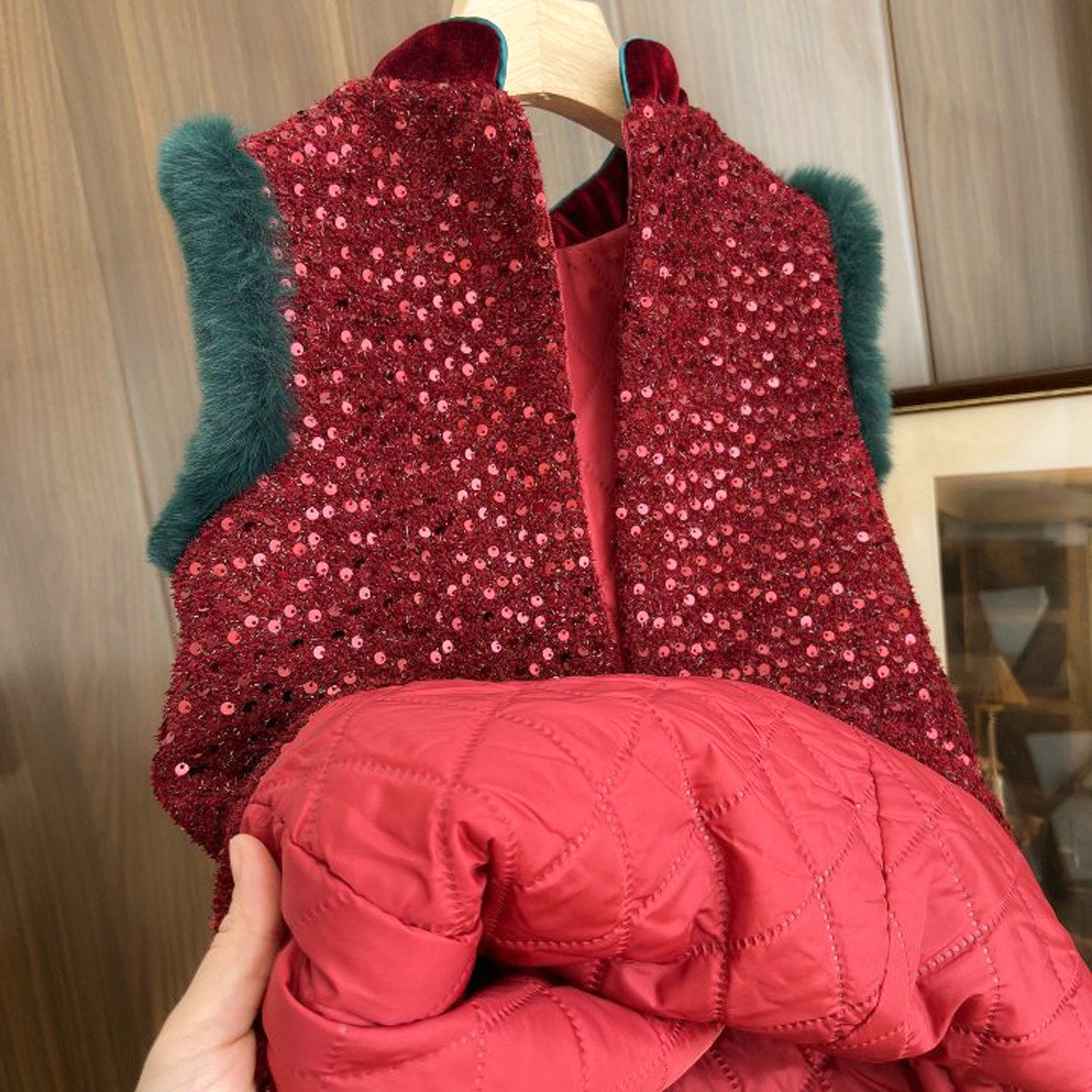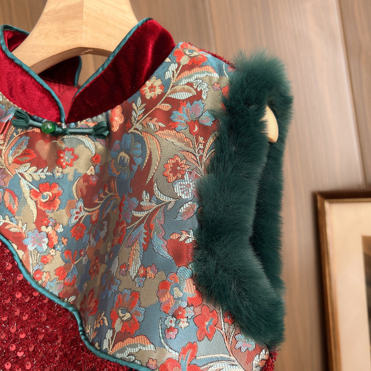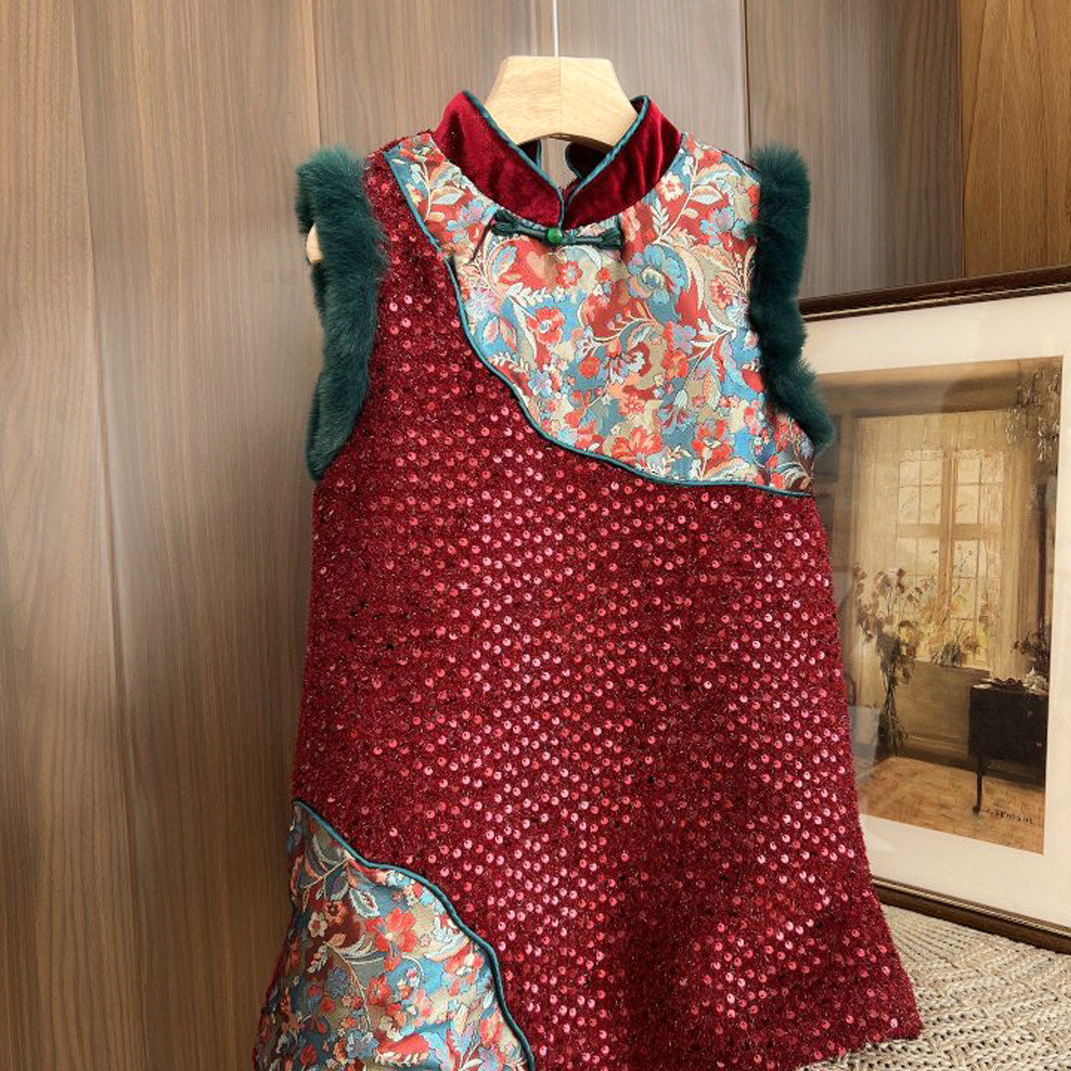 新年装 国风旗袍裙拜年服 女童亮片背心裙 A字连衣裙 冬款