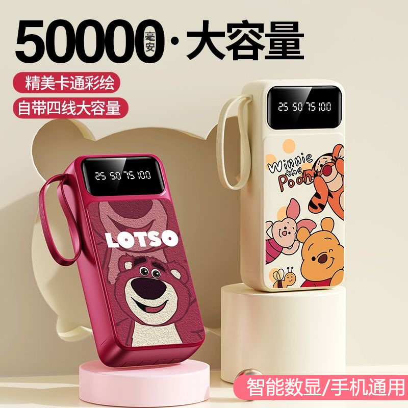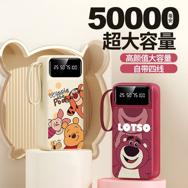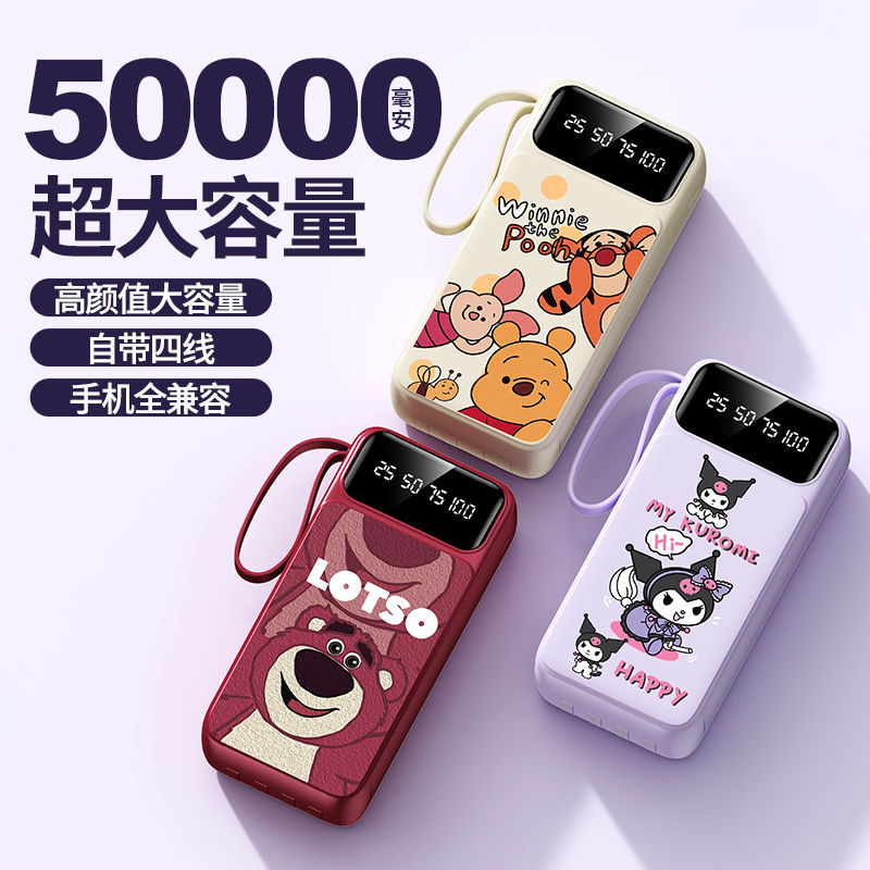 3C认证正品充电宝50000毫安大容量超薄小巧便携迷你20000自带线三合一快充移动电源适用华为苹果专用可上飞机
