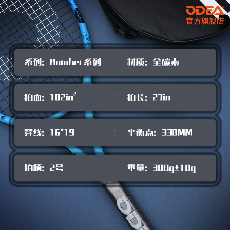 ODEA欧帝尔网球拍bomber大学生比赛全碳素拍男女通用初学训练拍