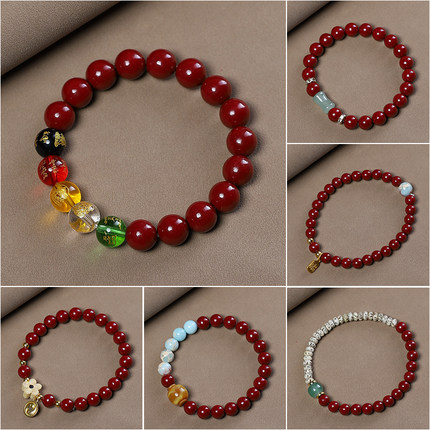 朱砂手串女diy小众设计款梅花福牌吊坠双拼星月配饰手链文玩饰品