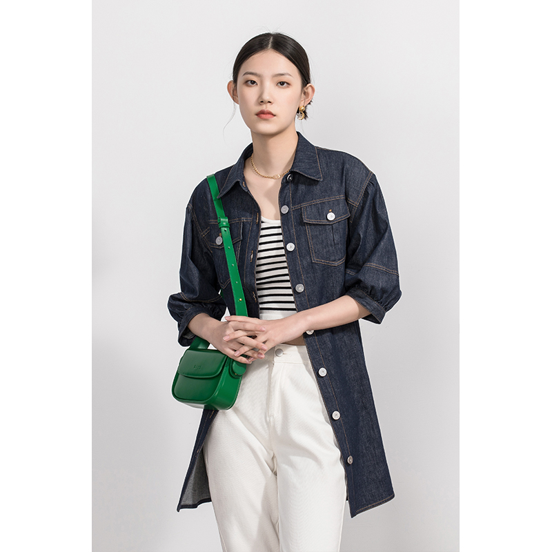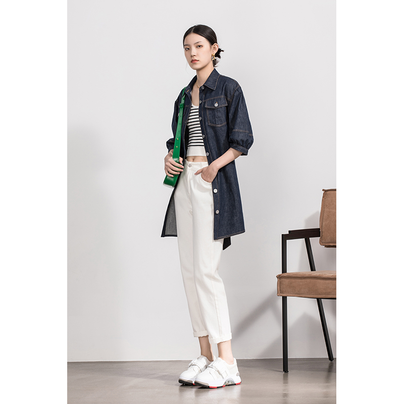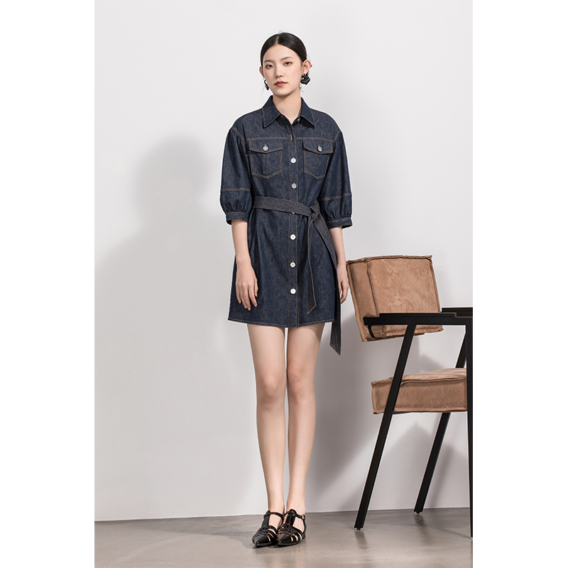 Yifini/易菲直筒H型系带收腰棉麻风衣式连衣裙女春秋新款薄款
